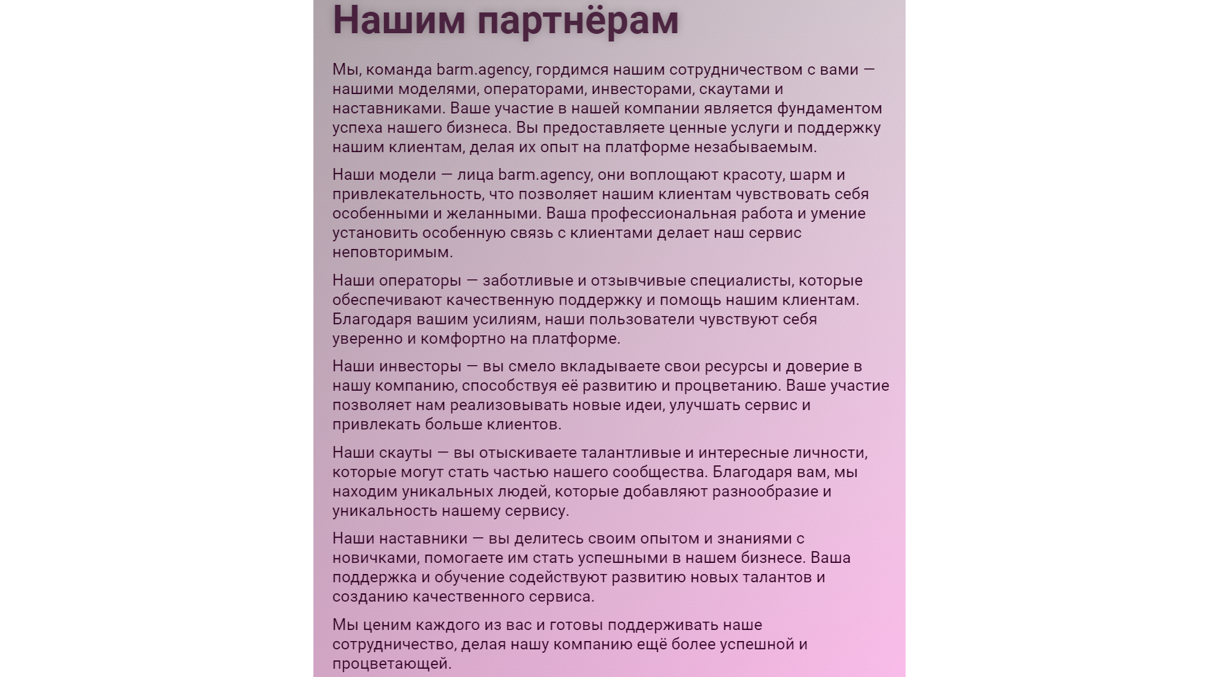 ????Франшиза дейтингового агентства Barm. (https://barm.agency/)