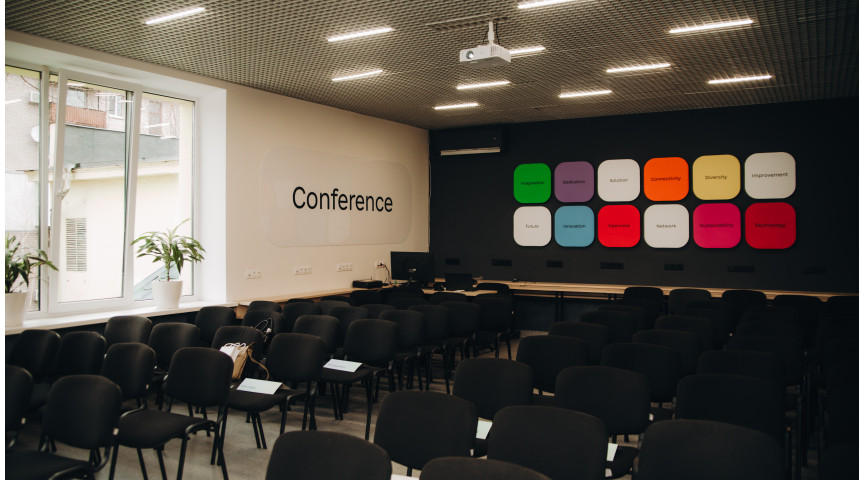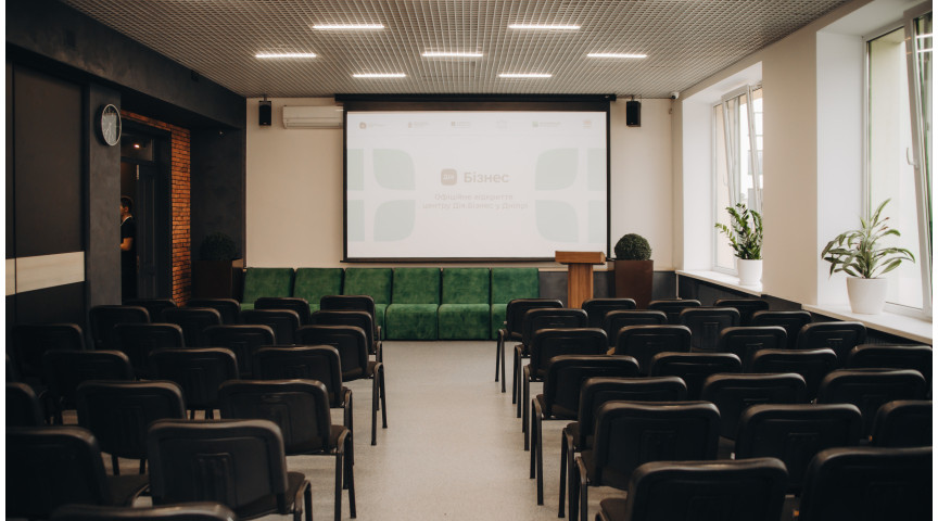 Конференц-зала центру підтримки підприємців Дія.Бізнес у Дніпрі — це сучасний та функціональний простір у центрі міста, який ідеально підходить для проведення лекцій, семінарів, тренінгів і корпоративних зустрічей.