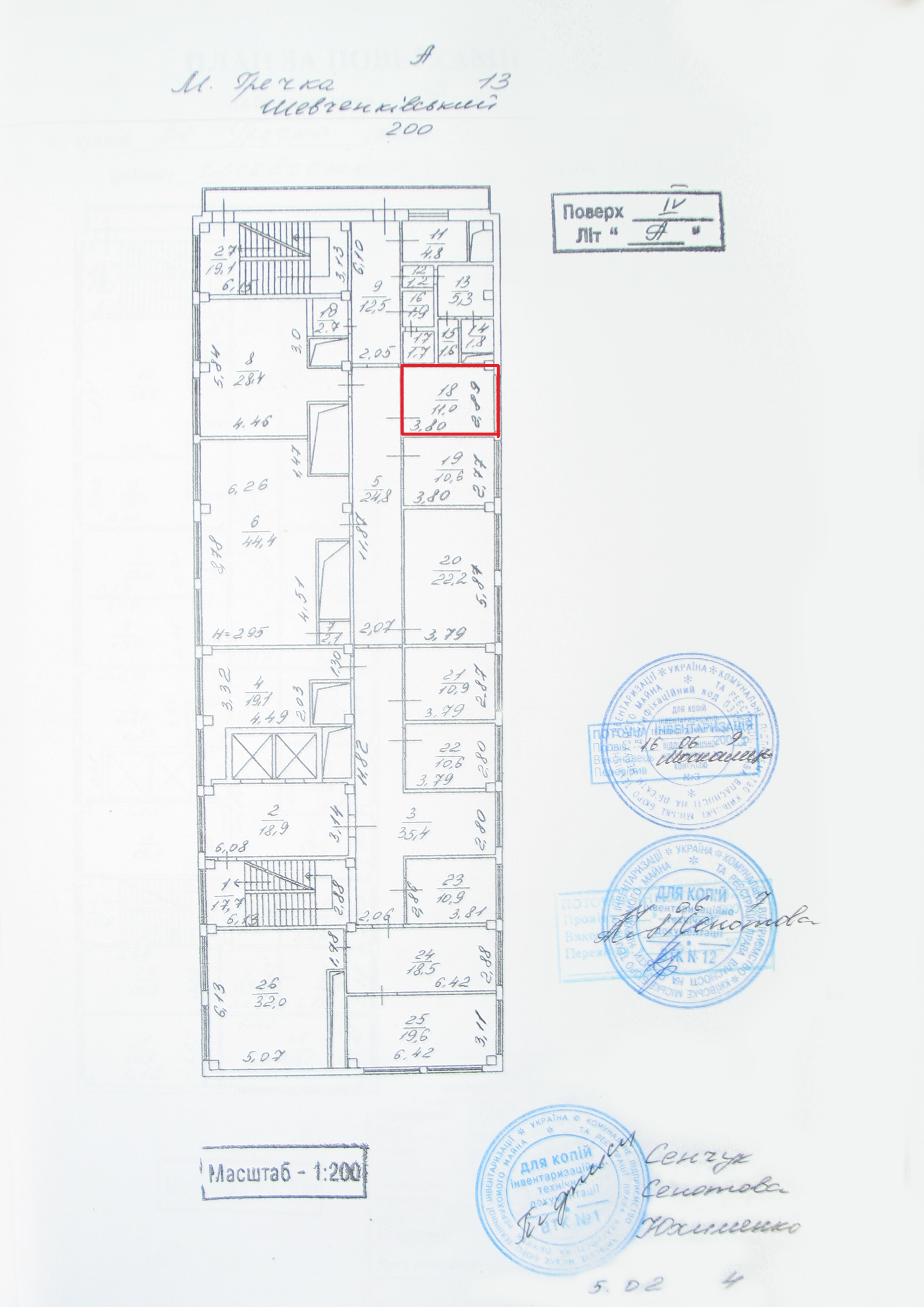 Офіс, 11,0 кв.м., на вул. Виговського Івана, 13. Четвертий поверх адміністративної будівлі. Територія охороняється. Є паркінг, ліфти. Вдала транспортна розв'язка, 10 хв. до метро Нивки та Сирець. Вартість 110 грн. (з ПДВ) за 1 кв. Комунальні та експлуатаційні послуги оплачуються окремо. Власник.