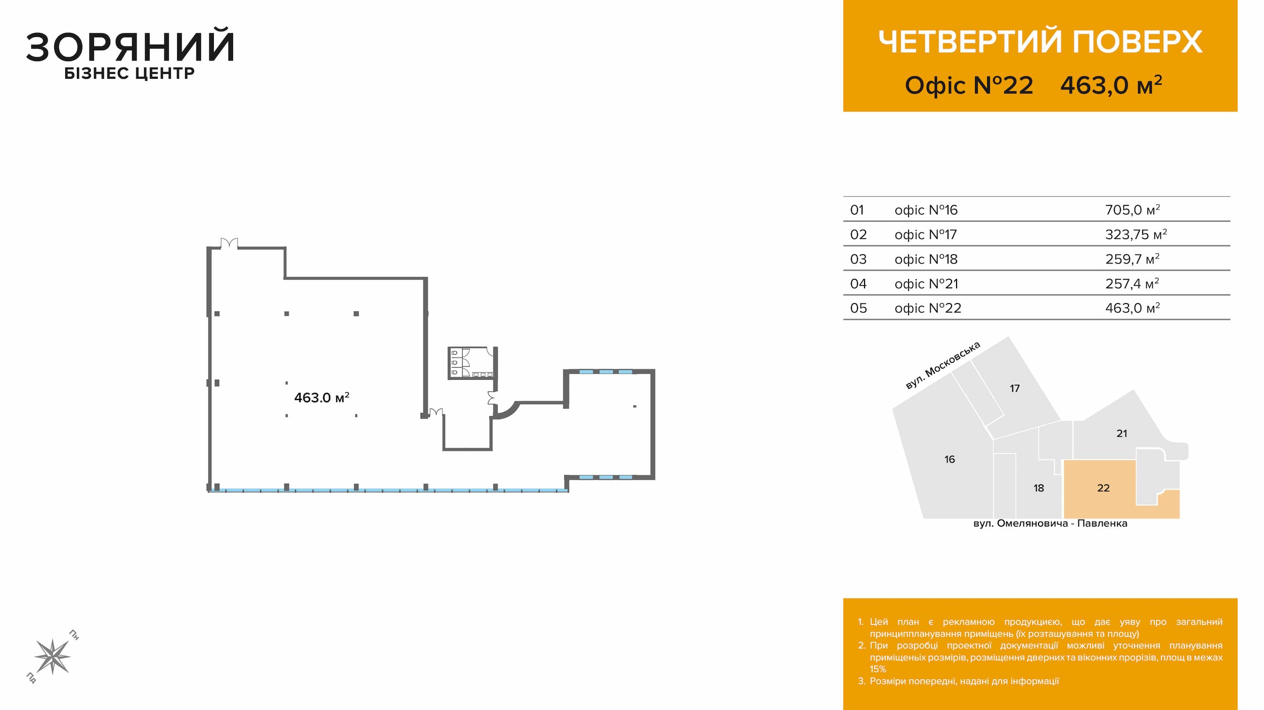 Офис 463 кв.м. в Бизнес центре "Зоряный", ул. Московская 31/33