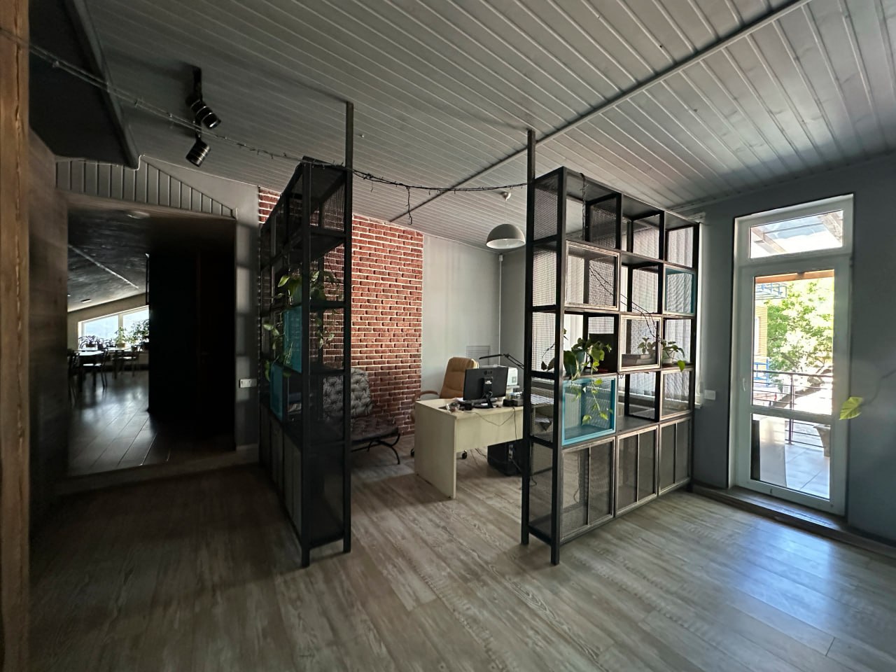 Предлагается в долгосрочную аренду офисное помещение на улице Атамана Головатого. Занимает второй и третий этаж (мансарда) 3-х этажного здания, отдельный основной вход + запасной вход, общая арендная площадь – 380 кв м Дизайнерский ремонт, офис полностью меблирован со стилистическими элементами декора. Помещение включает в себя 5 кабинетов разной площадью, 2 зоны open-space, полноценную кухню со столовой, 3 санузла, 2 кладовые, рессепшн, переговорную комнату, балкон-террасу со встроенным мангалом, площадью 15 кв м. Отопление на газу – двухконтурный котел, интернет разводка, кондиционеры во всех обособленных помещениях, охранная сигнализация, парковка на 10 авто. Из особенностей: - дополнительная водонакопительная бочка объемом 200л - система электричества настроена на переключение на генератор при надобности - 2 больших аквариума (при желание можно оставить) - полностью оборудованная кухня – встроенная варочная керамическая электрическая поверхность, электрическая духовка, посудомоечная машина