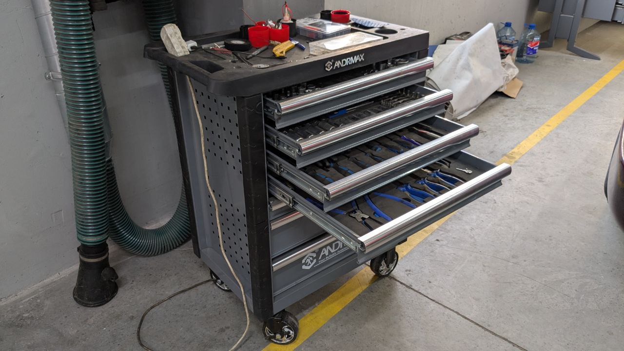 - Механічні інструментальні візки Andrmax з повним набором професійних інструментів.