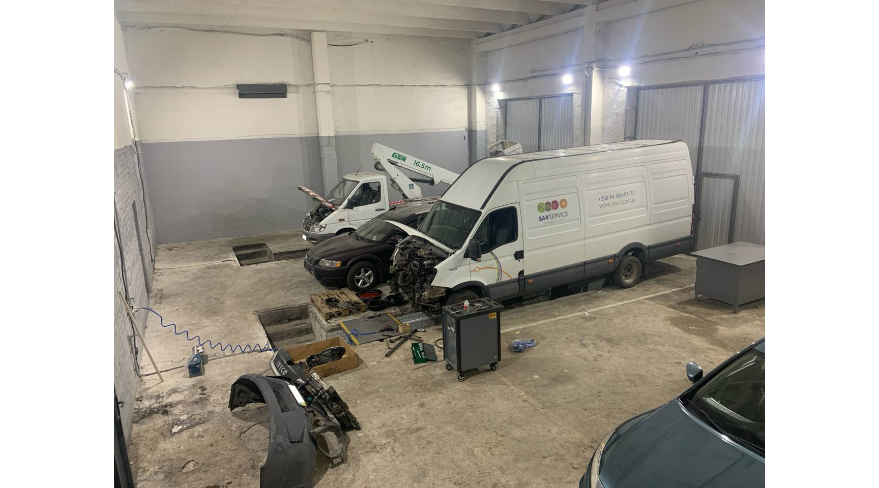Для виконання точних вимірювань і складних ремонтів застосовується спеціалізоване діагностичне, пуско-зарядне та монтажне обладнання. Вся техніка нова, сертифікована, розрахована на інтенсивну експлуатацію та відповідає міжнародним стандартам сервісного обслуговування.