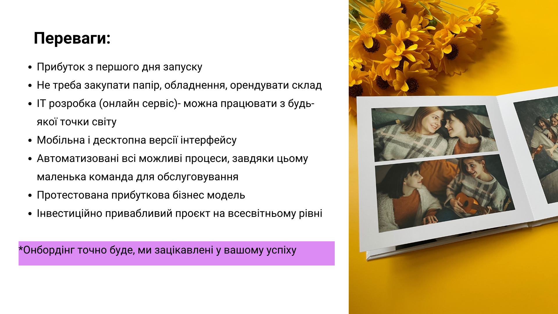 Сервіс Mofy.life - це сайт, на який люди завантажують фото та самостійно формують замовлення на фотобуки, холсти та інше. Онлайн бізнес, який працює з будь-якої точки світy.