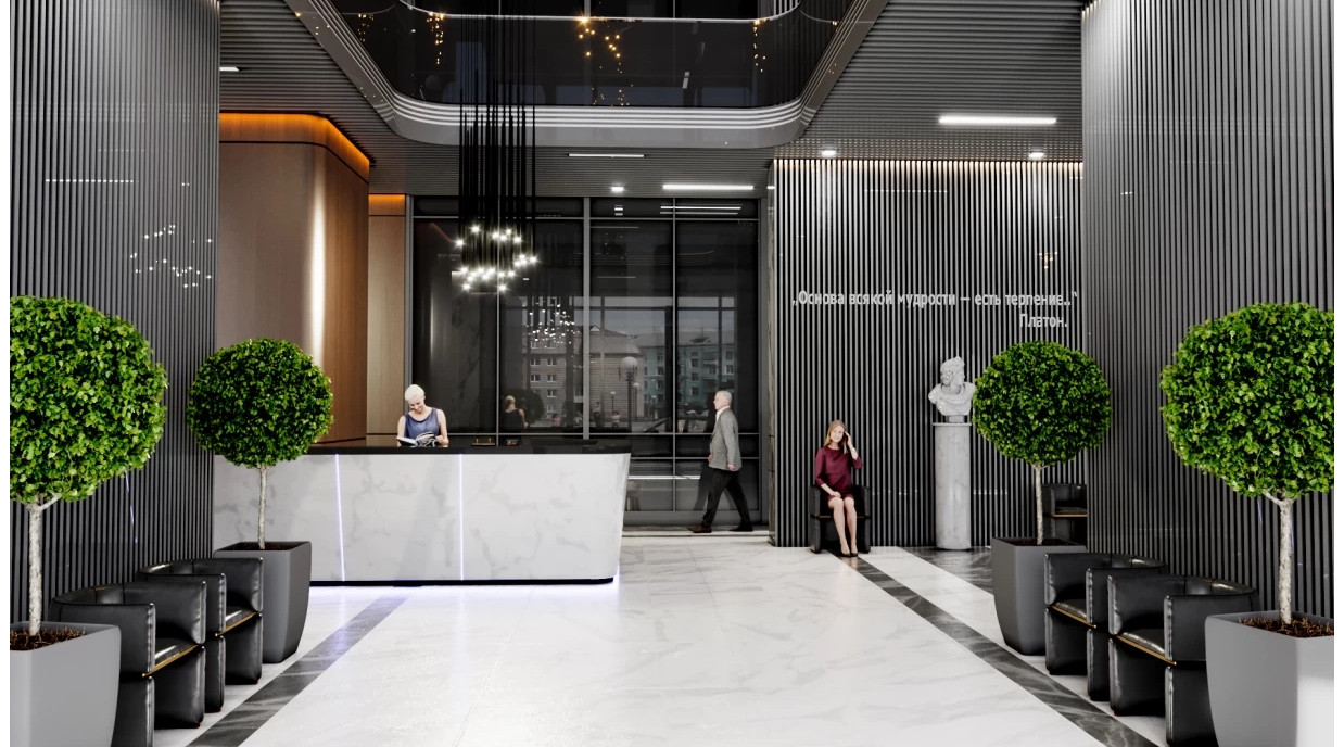 - сад, лаунж-зоны и арт-сквер.