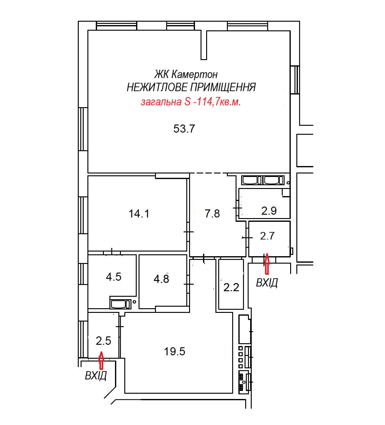 - підсобне приміщення - 2, 2 кв.м.