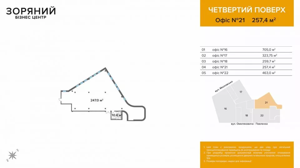 Офис 257,4 кв.м. в Бизнес центре "Зоряный", ул. Московская 31/33