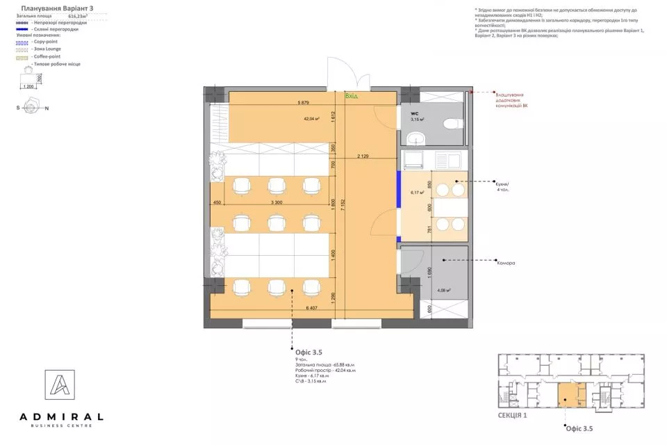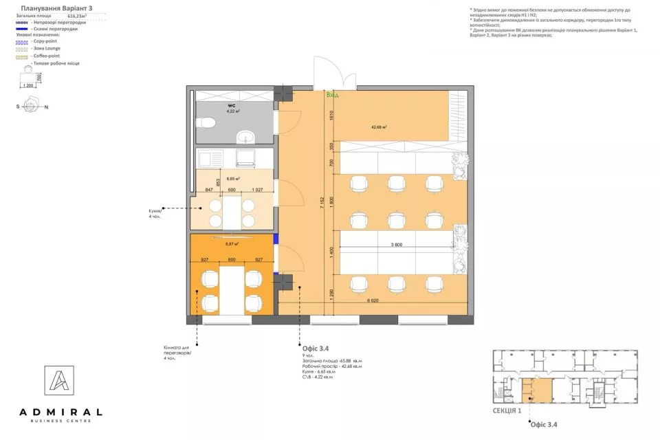 Стань власником офісного приміщення в БЦ “ADMIRAL”. Комерційна нерухомість від забудовника з власною інфраструктурою: -Підземний паркінг -Відділення б